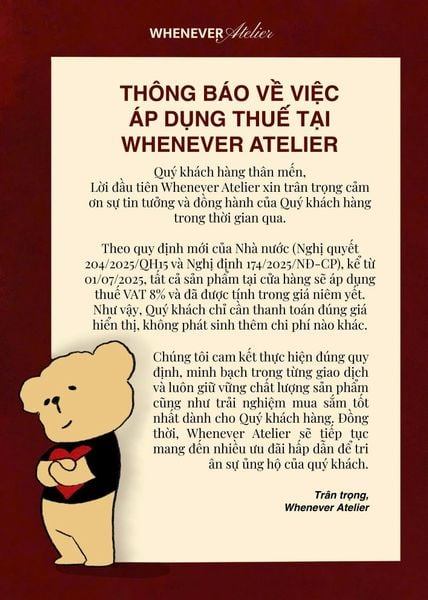 THÔNG BÁO VỀ VIỆC ÁP DỤNG THUẾ TẠI WHENEVER ATELIER