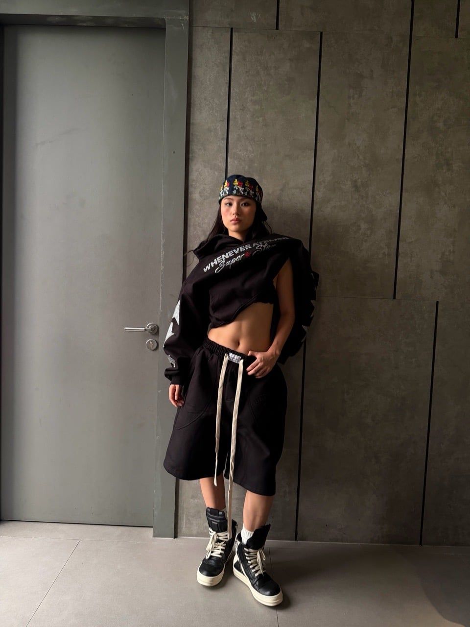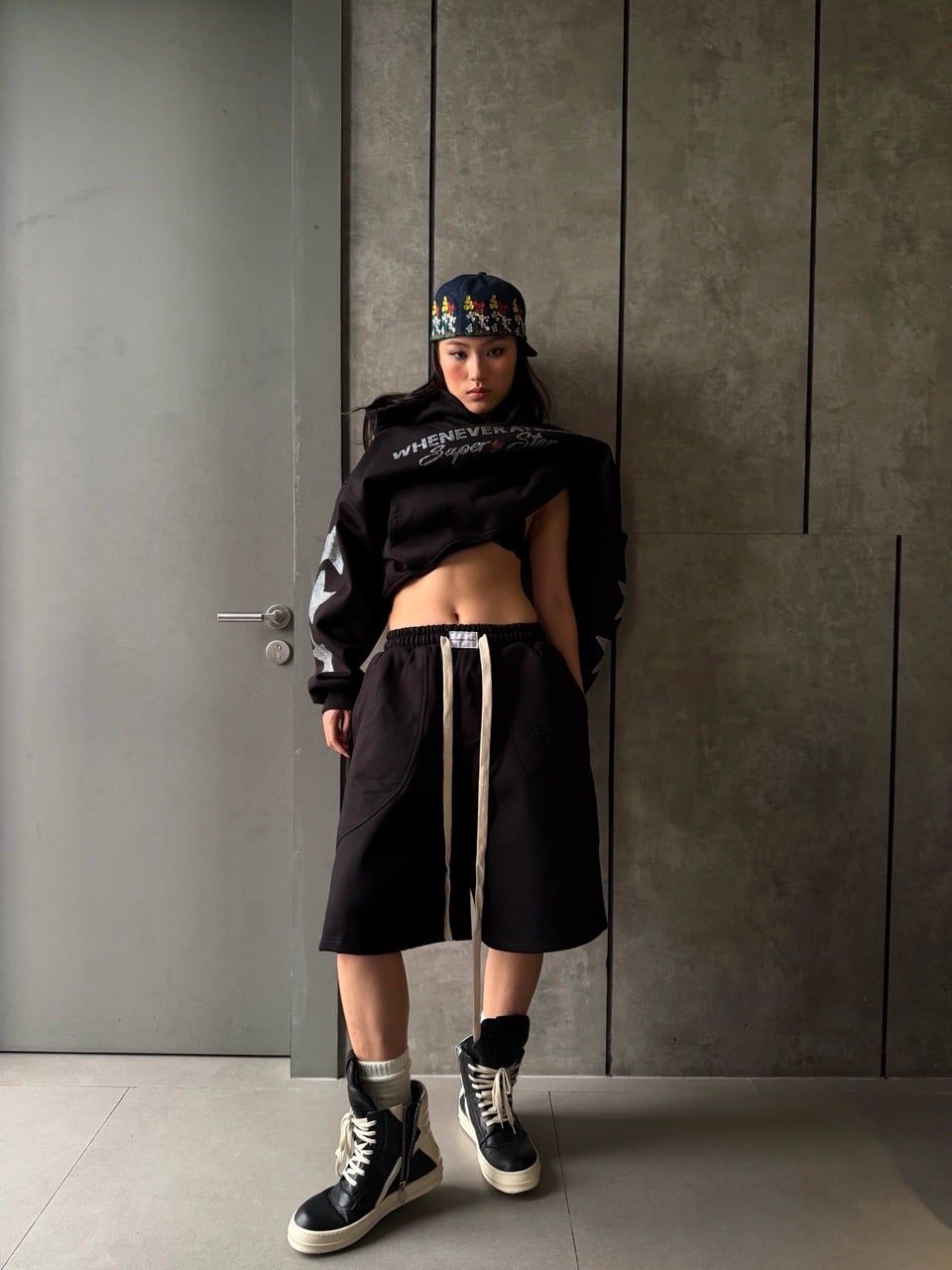 “WHENEVER” BAGGY SWEATSHORTS VER2 / BLACK