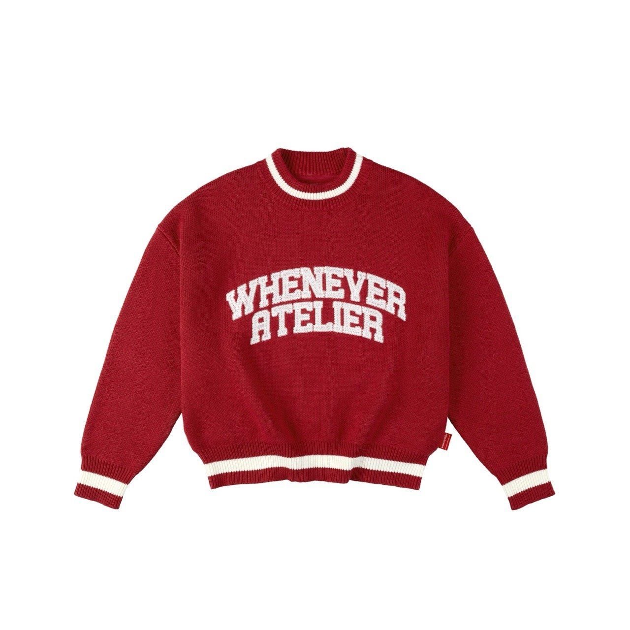 “WHENEVER” BASIC LOGO KNIT SWEATER / RED