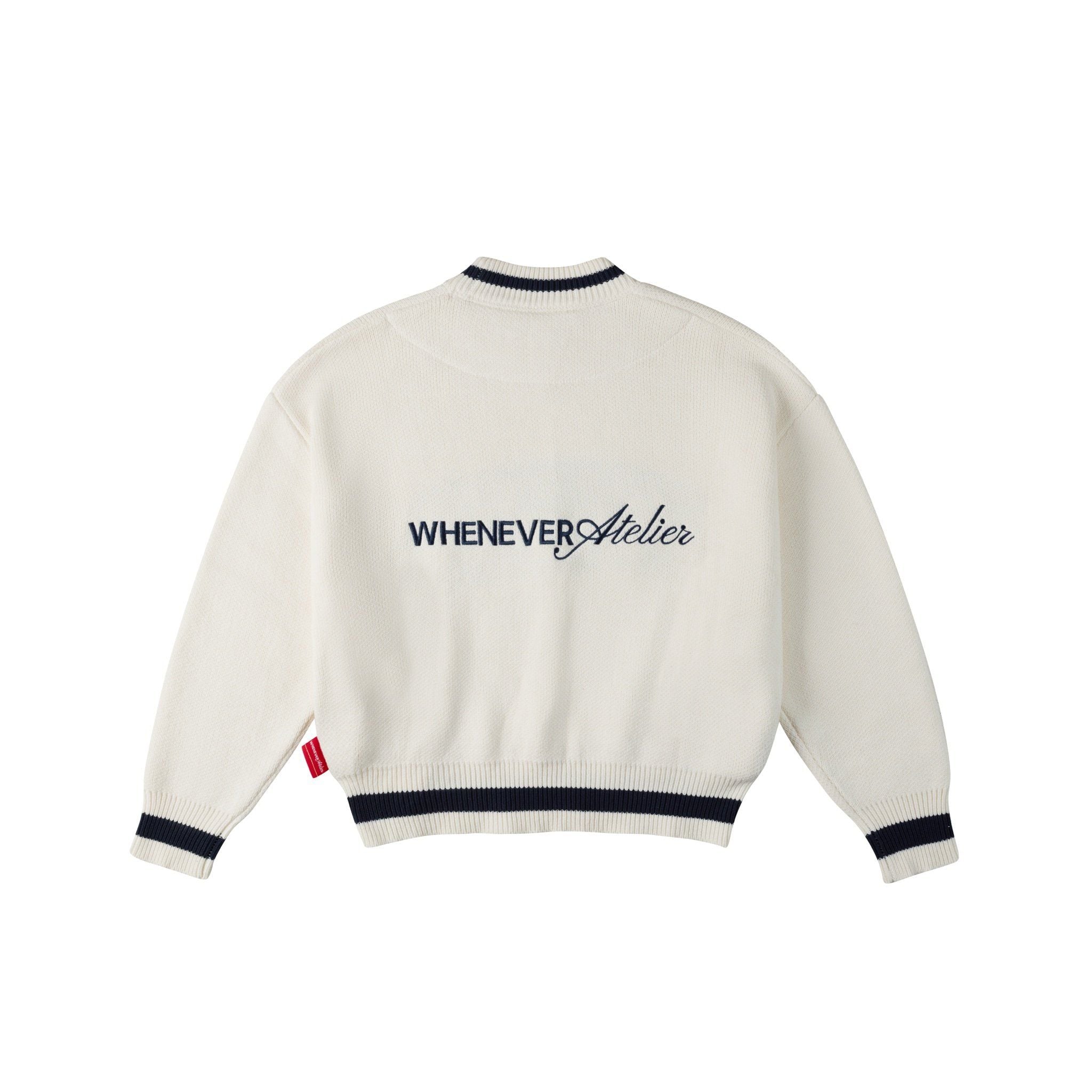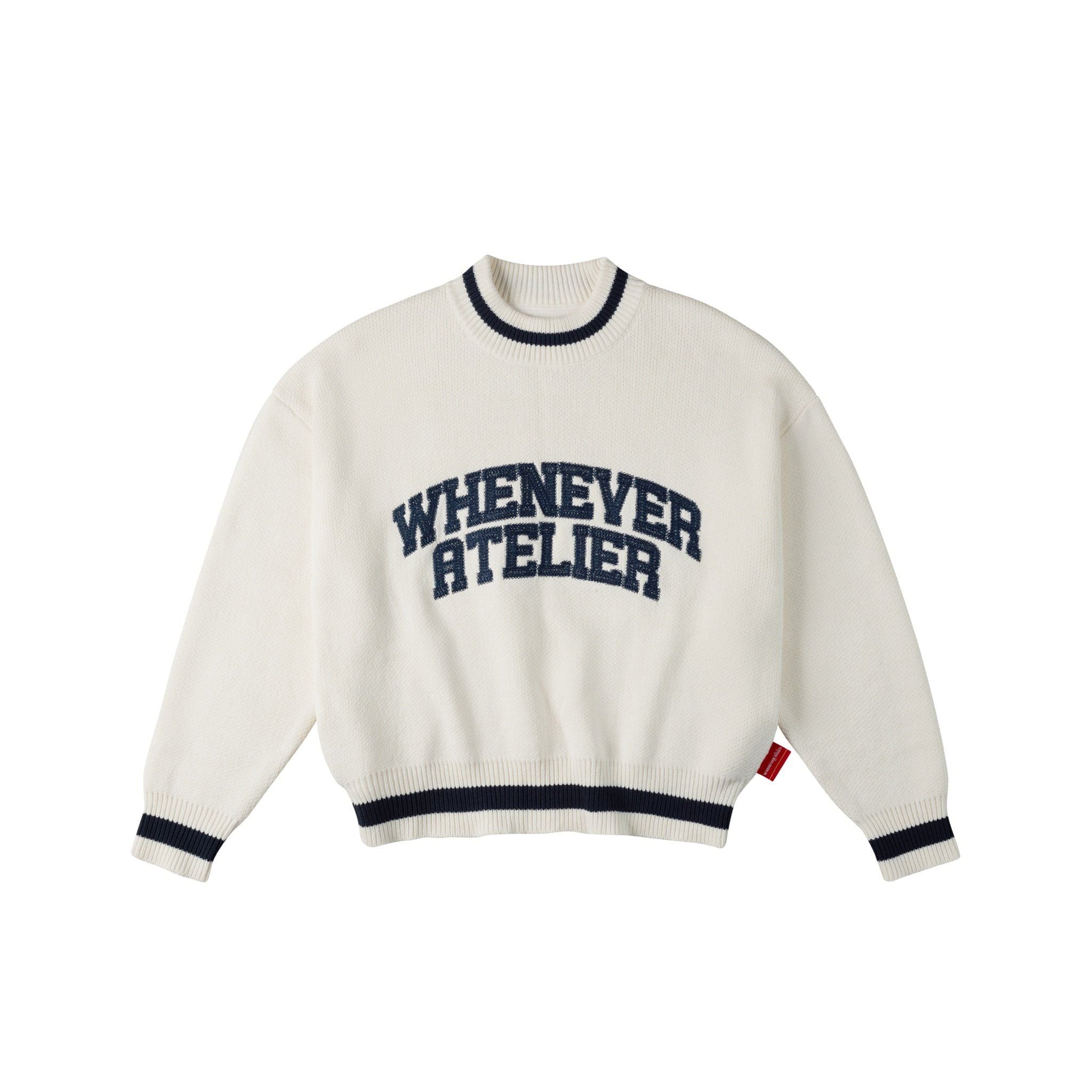 “WHENEVER” BASIC LOGO KNIT SWEATER / WHITE NAVY