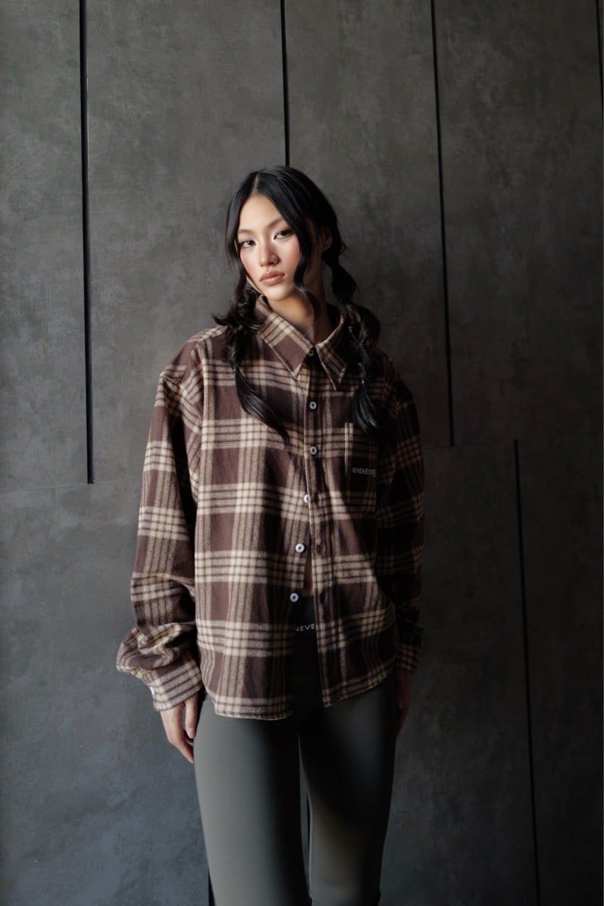 "WHENEVER" FLANNEL PLAID LONG-SLEEVE SHIRT / BROWN