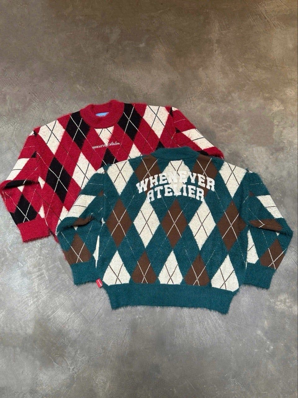 Chất liệu: Chiếc sweater knit của Whenever Atelier được dệt từ 100% lông nhân tạo mô phỏng lông chồn kết hợp sợi len nhung Angolan, mang lại bề mặt mềm mịn, sang trọng và độ ấm vượt trội. Sản phẩm sử dụng kỹ thuật dệt Intarsia kết hợp Double Knit, cho phép phối 2 loại sợi và 3 tông màu để tạo nên hoạ tiết hình thoi sắc nét, nổi khối màu giữa các mảng dệt.