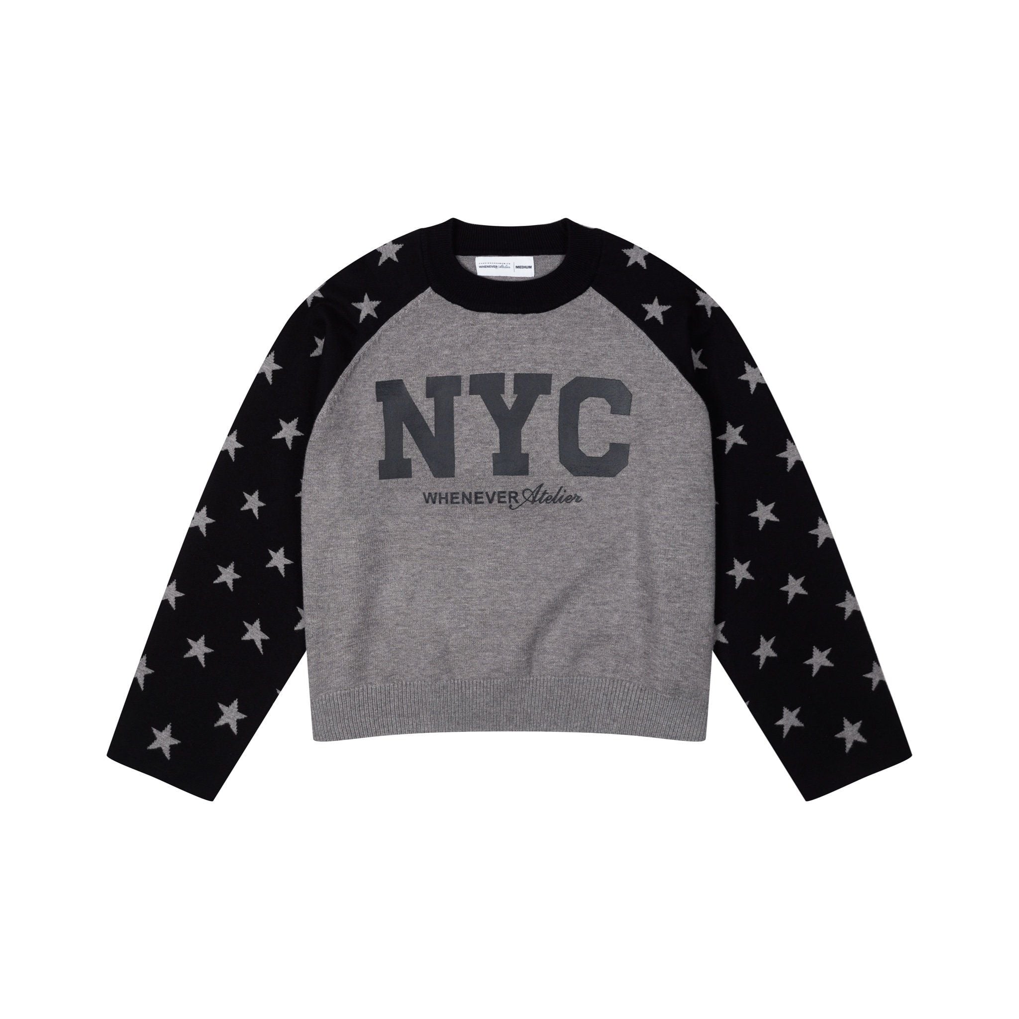“WHENEVER” STAR RAGLAN SWEATER / GREY BLACK